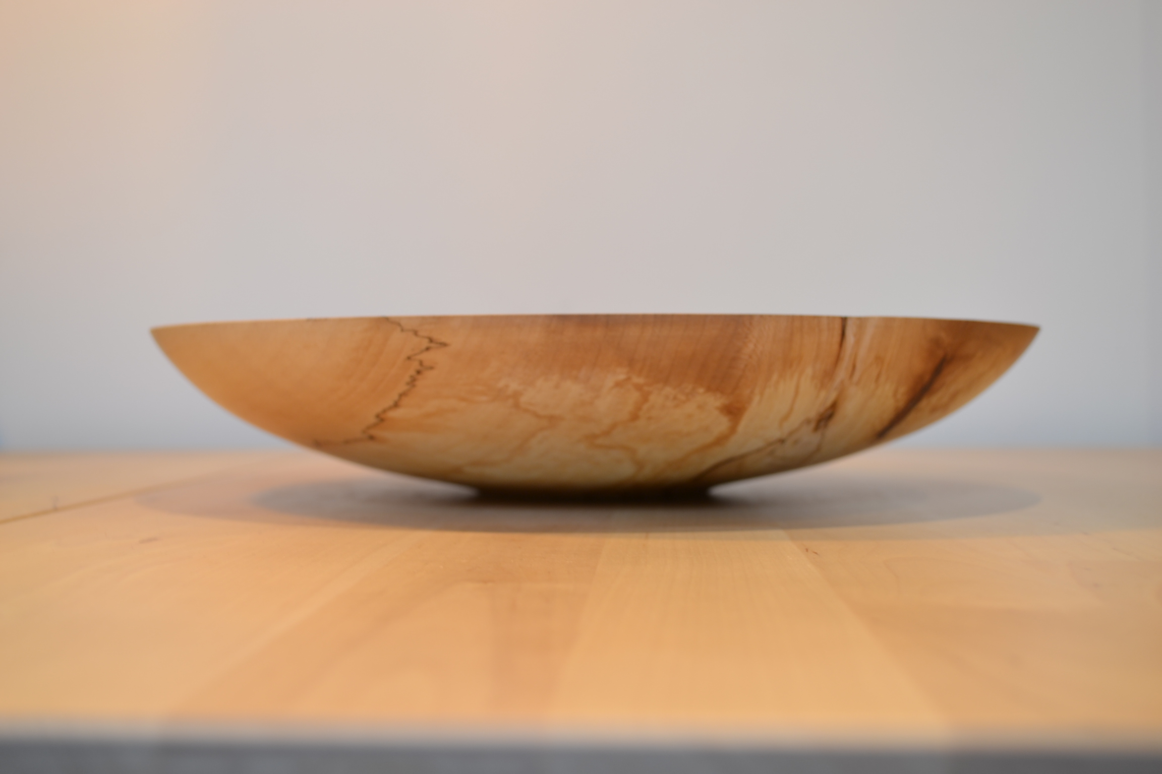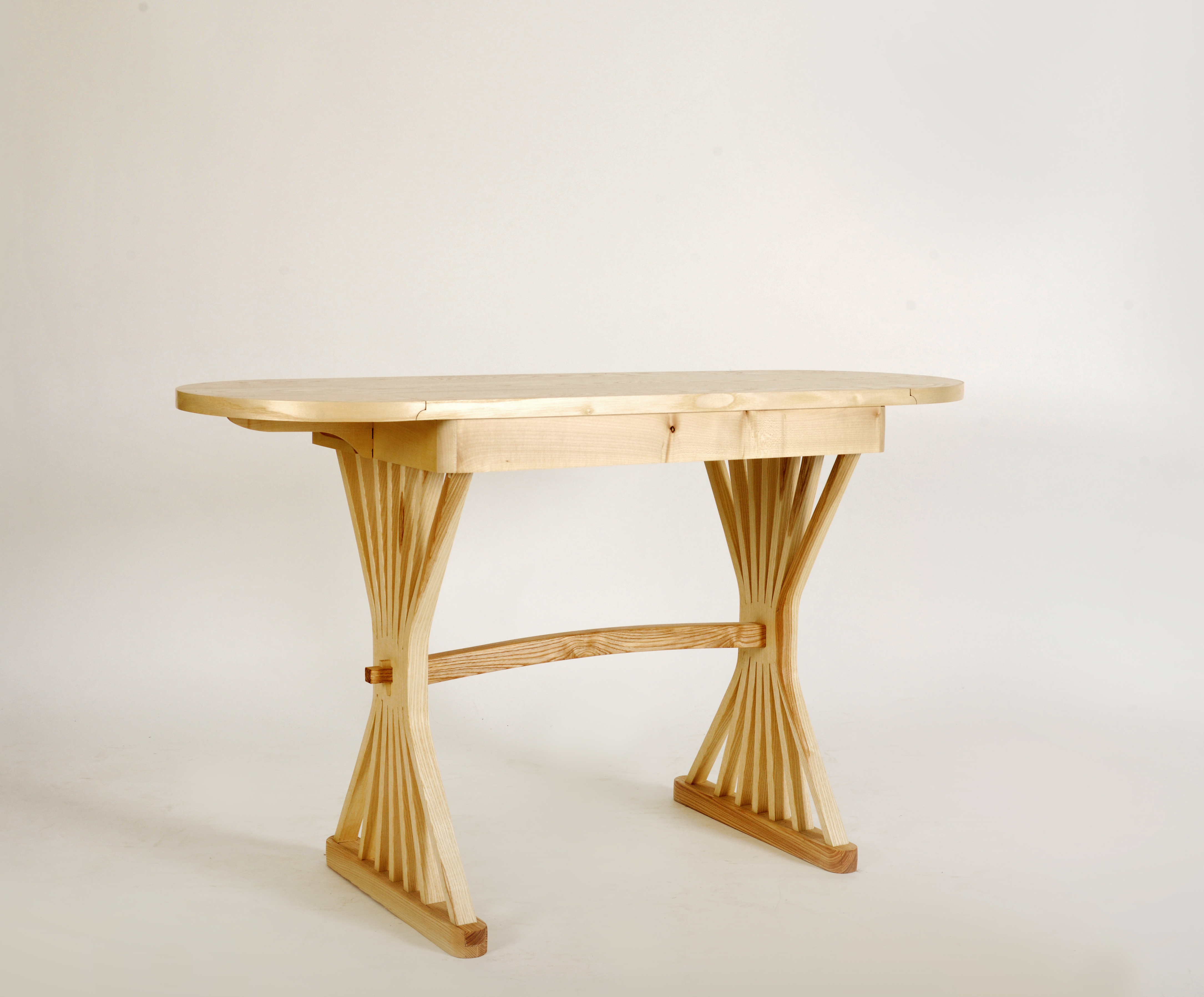 Ash veneer sowing table with steamed bent Ash legs and Sycamore case